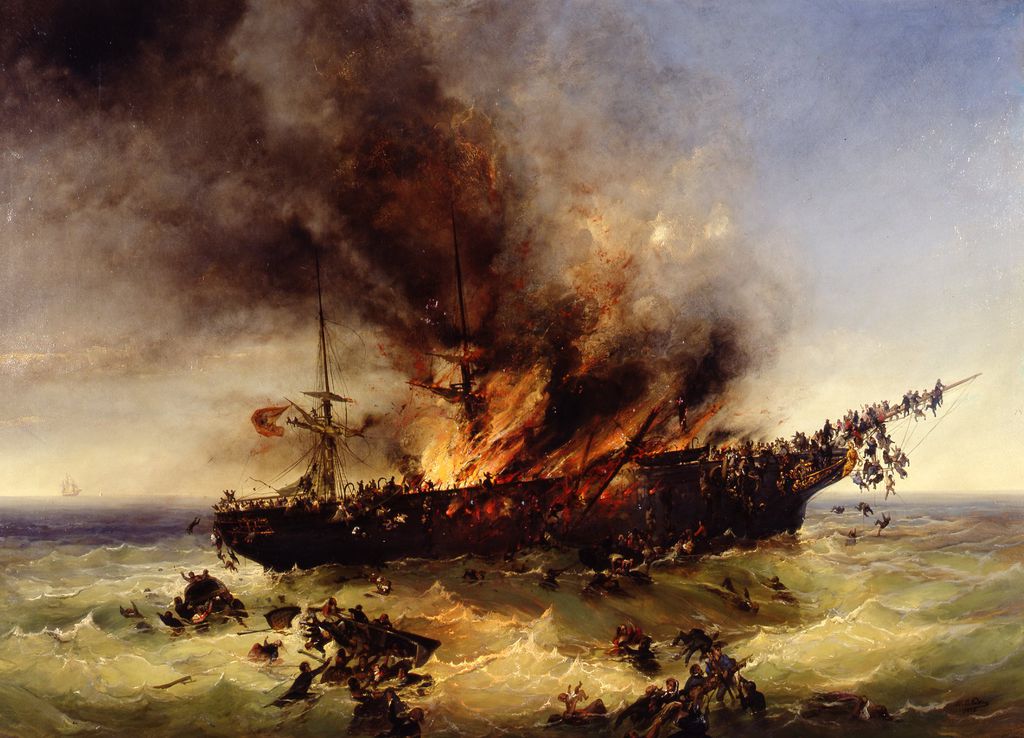 Wie die Wirklichkeit die schreckensvollsten Bilder der Erfindung überbietet, das hat sich wieder einmal auf’s Erschütterndste gezeigt. Es lassen sich mancherlei grauenhafte Situationen denken, und die menschliche Phantasie hat darin das Mögliche geleistet. Zu dem Entsetzlichsten gehört ein brennendes Schiff auf hoher See mit der wimmelnden, zuckenden, wahnsinnigen Todesangst zwischen den Dämonen des Feuers und des Wassers. Wir haben oft Gemälde dieser Art gesehen und gelesen, aber der Untergang der Austria übertrifft Alles, was Pinsel oder Feder der Art geschaffen. Im Folgenden geben wir eine Darstellung der furchtbaren Katastrophe, soweit sie sich bis jetzt übersehen läßt.